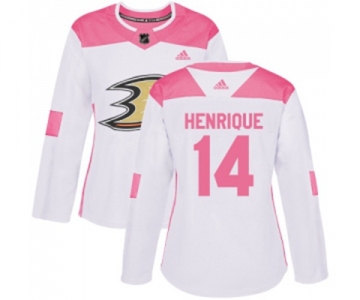 Women Anaheim Ducks #14 Adam Henrique Authentic White Pink Fashion Hockey Jersey