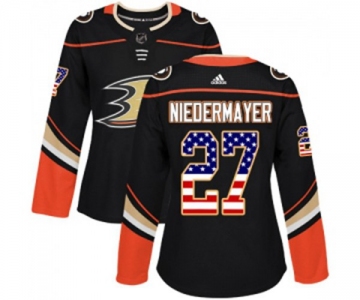 Women Anaheim Ducks #27 Scott Niedermayer Authentic Black USA Flag Fashion Hockey Jersey