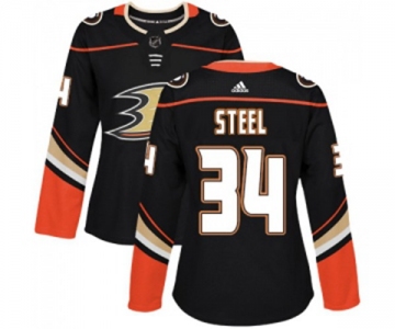 Women Anaheim Ducks #34 Sam Steel Authentic Black Home Hockey Jersey