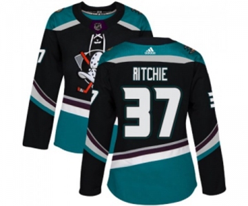 Women Anaheim Ducks #37 Nick Ritchie Authentic Black Teal Alternate Hockey Jersey
