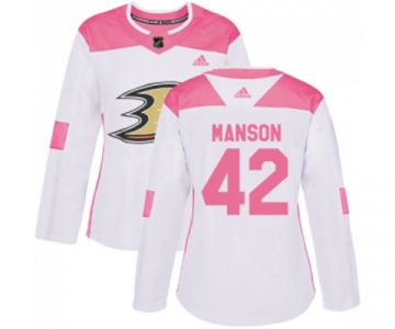 Women Anaheim Ducks #42 Josh Manson Authentic White Pink Fashion Hockey Jersey