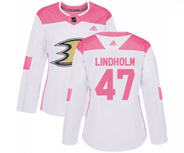 Women Anaheim Ducks #47 Hampus Lindholm Authentic White Pink Fashion Hockey Jersey