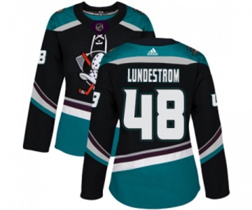 Women Anaheim Ducks #48 Isac Lundestrom Authentic Black Teal Alternate Hockey Jersey
