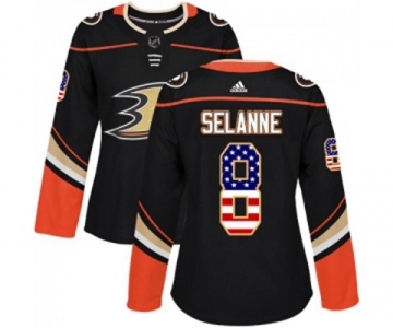 Women Anaheim Ducks #8 Teemu Selanne Authentic Black USA Flag Fashion Hockey Jersey