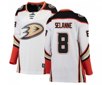 Women Anaheim Ducks #8 Teemu Selanne Authentic White Away Fanatics Branded Breakaway Hockey Jersey