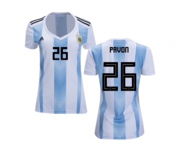 Women Argentina #26 Pavon Home Soccer Country Jersey
