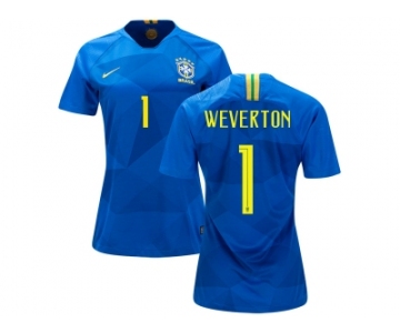Women Brazil #1 Weverton Away Soccer Country Jersey
