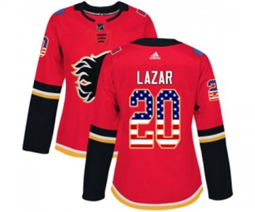 Women Calgary Flames #20 Curtis Lazar Authentic Red USA Flag Fashion Hockey Jersey