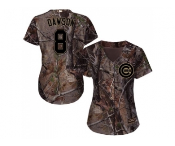 Women Chicago Cubs #8 Andre Dawson Camo Realtree Collection Cool Base Stitched MLB Jersey