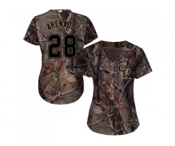 Women Colorado Rockies #28 Nolan Arenado Camo Realtree Collection Cool Base Stitched MLB Jersey