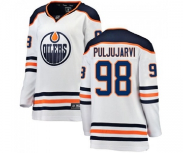Women Edmonton Oilers #98 Jesse Puljujarvi Authentic White Away Fanatics Branded Breakaway NHL Jersey