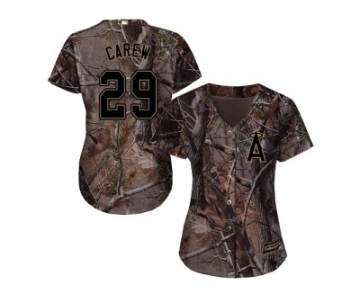 Women Los Anaheim Angels #29 Rod Carew Camo Realtree Collection Cool Base Stitched MLB Jersey
