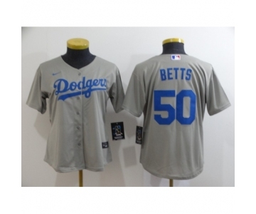 Women Los Angeles Dodgers #50 Mookie Betts Royal Gray 2020 Cool Base Jersey