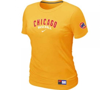 Women MLB Chicago Cubs Nike Yellow Short Sleeve Practice T-Shirt