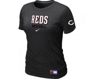 Women MLB Cincinnati Reds Nike Black Short Sleeve Practice T-Shirt