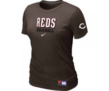 Women MLB Cincinnati Reds Nike Brown Short Sleeve Practice T-Shirt
