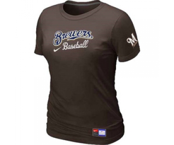 Women MLB Milwaukee Brewers Nike Brown Short Sleeve Practice T-Shirt