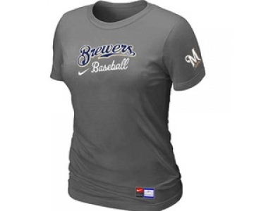 Women MLB Milwaukee Brewers Nike D.Grey Short Sleeve Practice T-Shirt
