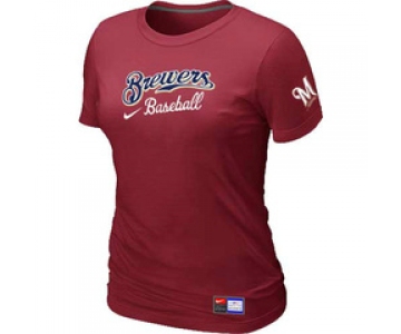 Women MLB Milwaukee Brewers Nike Red Short Sleeve Practice T-Shirt