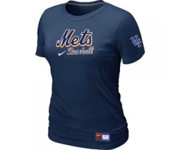 Women MLB New York Mets Nike D.Blue Short Sleeve Practice T-Shirt