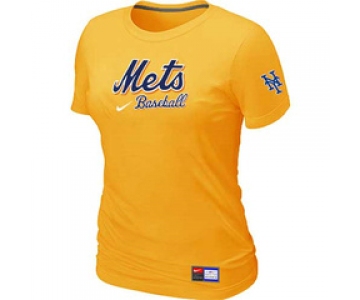 Women MLB New York Mets Nike Yellow Short Sleeve Practice T-Shirt