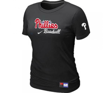 Women MLB Philadelphia Phillies Nike Black Short Sleeve Practice T-Shirt