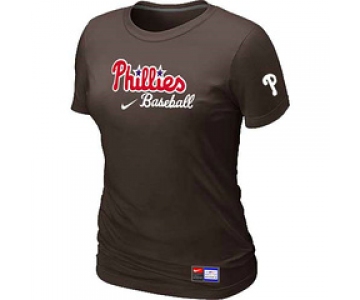 Women MLB Philadelphia Phillies Nike Brown Short Sleeve Practice T-Shirt