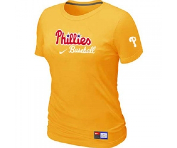 Women MLB Philadelphia Phillies Nike Yellow Short Sleeve Practice T-Shirt
