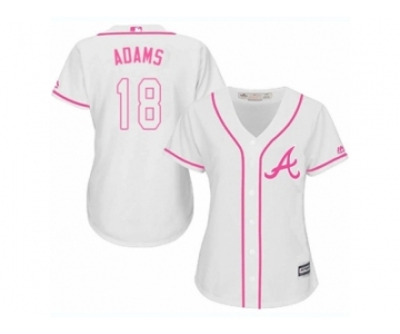 Women Majestic Atlanta Braves #18 Matt Adams Replica White Fashion Cool Base MLB Jersey