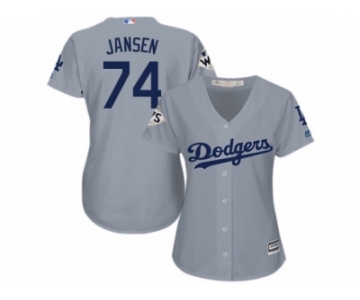 Women Majestic Los Angeles Dodgers #74 Kenley Jansen Replica Grey Road 2017 World Series Bound Cool Base MLB Jersey