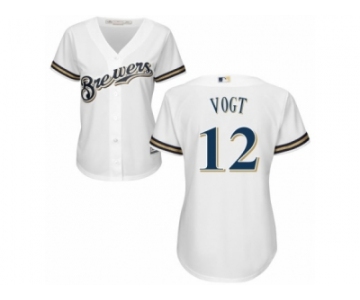 Women Majestic Milwaukee Brewers #12 Stephen Vogt Authentic White Home Cool Base MLB Jersey
