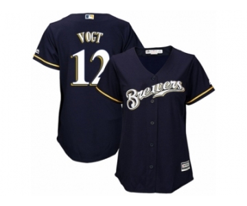 Women Majestic Milwaukee Brewers #12 Stephen Vogt Replica Navy Blue Alternate Cool Base MLB Jersey