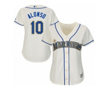 Women Majestic Seattle Mariners #10 Yonder Alonso Authentic Cream Alternate Cool Base MLB Jersey