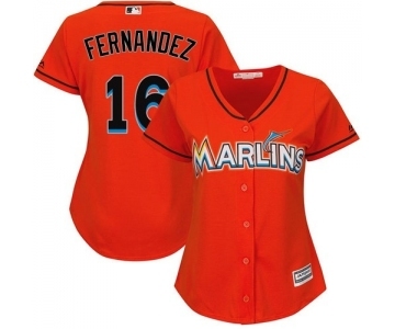 Women Miami Marlins #16 Jose Fernandez Majestic Orange Cool Base Player Jersey