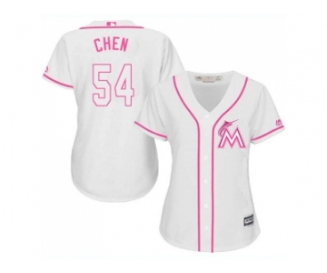 Women Miami Marlins #54 Wei-Yin Chen White Pink Fashion Stitched MLB Jersey