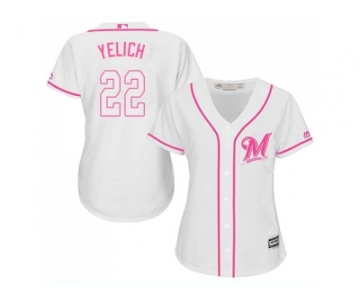 Women Milwaukee Brewers #22 Christian Yelich White Pink Fashion Stitched MLB Jersey