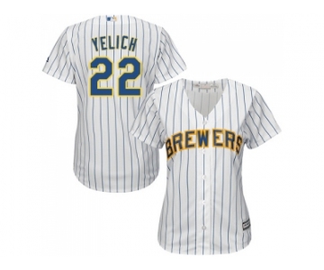 Women Milwaukee Brewers #22 Christian Yelich White Strip Home Stitched MLB Jersey