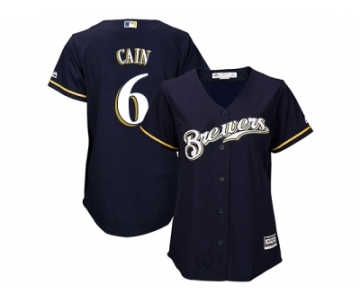 Women Milwaukee Brewers #6 Lorenzo Cain Navy Blue Alternate Stitched MLB Jersey