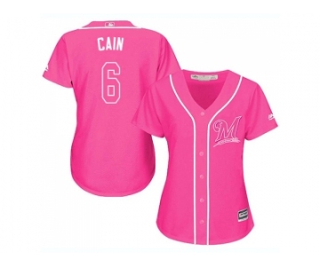 Women Milwaukee Brewers #6 Lorenzo Cain Pink Fashion Stitched MLB Jersey