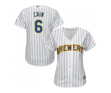 Women Milwaukee Brewers #6 Lorenzo Cain White Strip Home Stitched MLB Jersey
