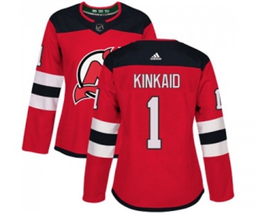 Women New Jersey Devils #1 Keith Kinkaid Authentic Red Home Hockey Jersey