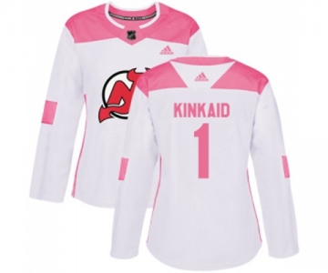 Women New Jersey Devils #1 Keith Kinkaid Authentic White Pink Fashion Hockey Jersey