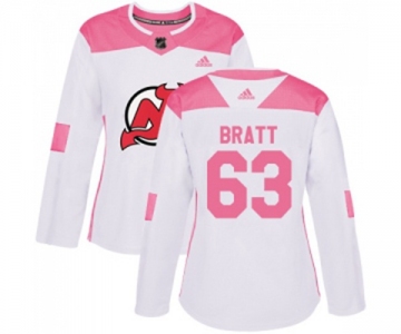 Women New Jersey Devils #63 Jesper Bratt Authentic White Pink Fashion Hockey Jersey