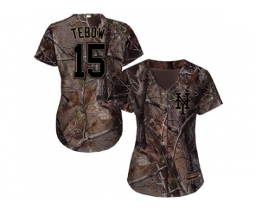 Women New York Mets #15 Tim Tebow Camo Realtree Collection Cool Base Stitched MLB Jersey