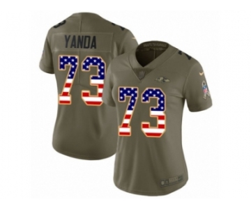 Women Nike Baltimore Ravens #73 Marshal Yanda Limited Olive USA Flag Salute to Service NFL Jersey