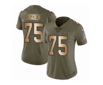 Women Nike Baltimore Ravens #75 Jonathan Ogden Limited Olive Gold Salute to Service NFL Jersey