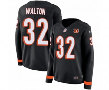 Women Nike Cincinnati Bengals #32 Mark Walton Limited Black Therma Long Sleeve NFL Jersey