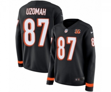 Women Nike Cincinnati Bengals #87 C.J. Uzomah Limited Black Therma Long Sleeve NFL Jersey