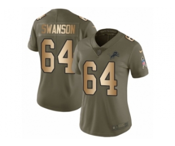 Women Nike Detroit Lions #64 Travis Swanson Limited Olive Gold Salute to Service NFL Jersey