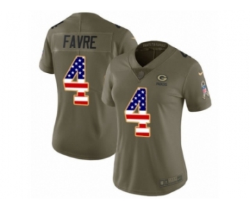 Women Nike Green Bay Packers #4 Brett Favre Limited Olive USA Flag 2017 Salute to Service NFL Jersey